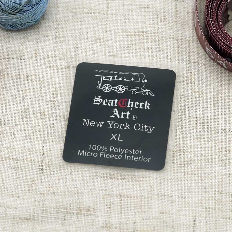 Heat transfer labels are applied using a commercial heat press or home iron — no sewing required. Set your press to 320 degrees Fahrenheit or home iron to medium cotton setting. Press firmly for 15 seconds then let cool completely. That's it!